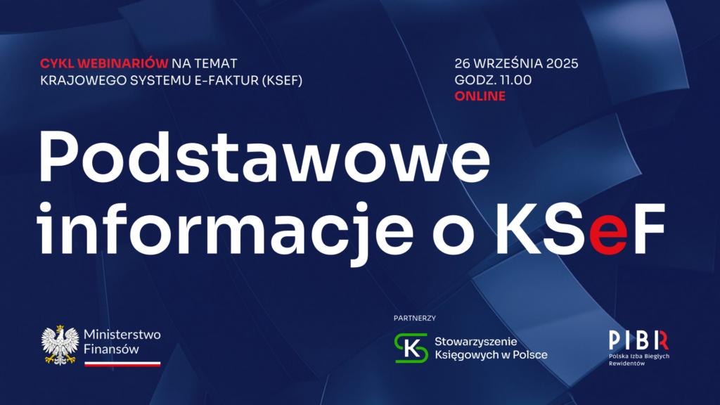 Ministerstwo Finansów, we współpracy ze Stowarzyszeniem Księgowych w Polsce (SKwP) oraz Polską Izbą Biegłych Rewidentów (PIBR), zaprasza na bezpłatny cykl webinariów poświęconych Krajowemu Systemowi e-Faktur.