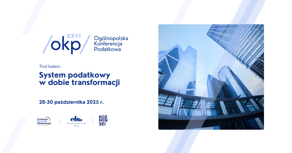 Już 28-30 października 2025 roku odbędzie się XXVI edycja organizowanej corocznie przez ELSA Poland Ogólnopolskiej Konferencji Podatkowej!