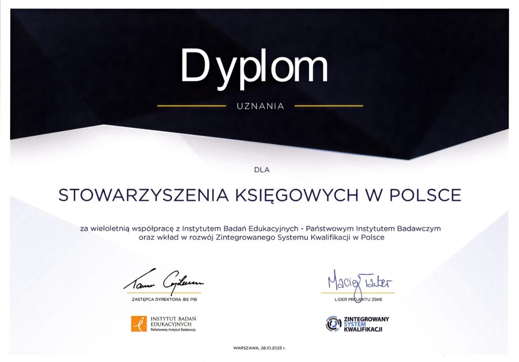 28 października br. podczas II FORUM INSTYTUCJI CERTYFIKUJĄCYCH zorganizowanego przez Instytut Badań Edukacyjnych – Państwowy Instytut Badawczy, Stowarzyszenie Księgowych w Polsce otrzymało dyplom uznania za wieloletnią współpracę z IBE PIB oraz wkład w rozwój Zintegrowanego Systemu Kwalifikacji w Polsce.