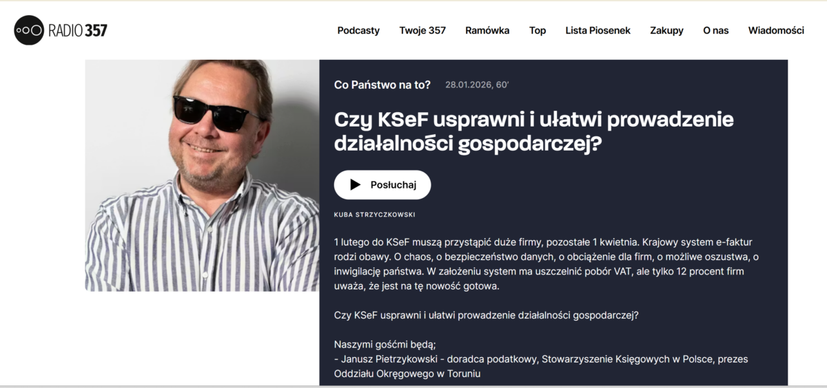 Audycja „Co Państwo na to?”, prowadzona przez Kubę Strzyczkowskiego, dotyczyła tematu: Czy KSeF usprawni i ułatwi prowadzenie działalności gospodarczej?