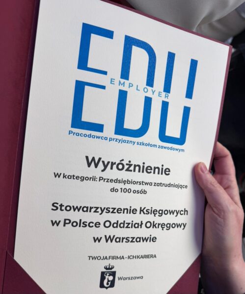 Z dumą ogłaszamy, że O/O w Warszawie SKwP został wyróżniony w konkursie „Pracodawca Przyjazny Szkołom Zawodowym – EduEmployer”.