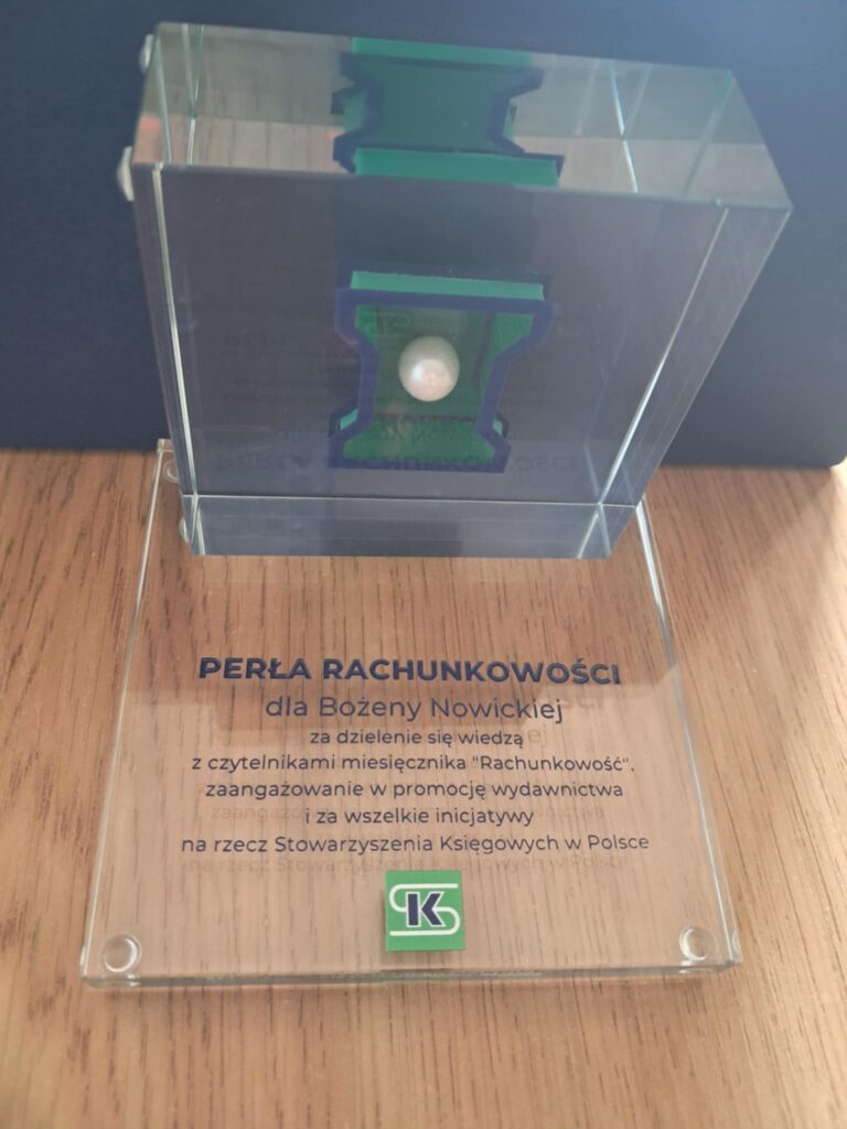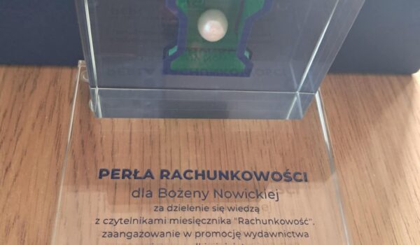 Wyróżnienie to przyznawane jest za aktywne dzielenie się wiedzą z czytelnikami miesięcznika „Rachunkowość”, zaangażowanie w promocję czasopisma oraz za cenny wkład w działalność i rozwój Stowarzyszenia Księgowych w Polsce.
