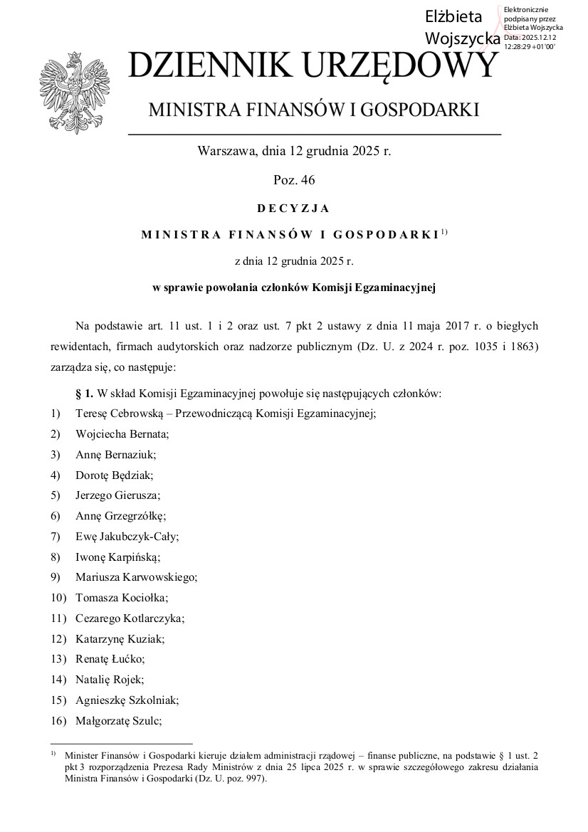 Jest nam niezwykle miło poinformować, że dr Teresa Cebrowska – przewodnicząca Głównej Zawodowej Komisji Egzaminacyjnej SKwP, biegły rewident, członek Komitetu Standardów Rachunkowości i ceniony wykładowca SKwP – została powołana na funkcję przewodniczącej Komisji Egzaminacyjnej dla Biegłych Rewidentów.