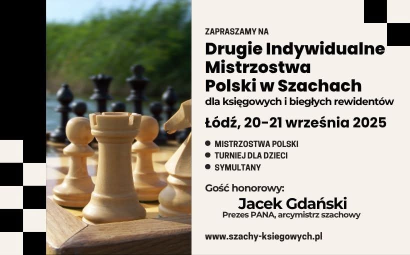 W wydarzeniu weźmie również udział Jacek Gdański – biegły rewident, Prezes Polska Agencja Nadzoru Audytowego oraz arcymistrz szachowy. To niepowtarzalna okazja, by spotkać wybitnego przedstawiciela naszego środowiska, który łączy świat finansów i szachów na najwyższym poziomie! Serdecznie zapraszamy do udziału w turnieju. Link do zapisów, znajduje się w załączonej grafice.