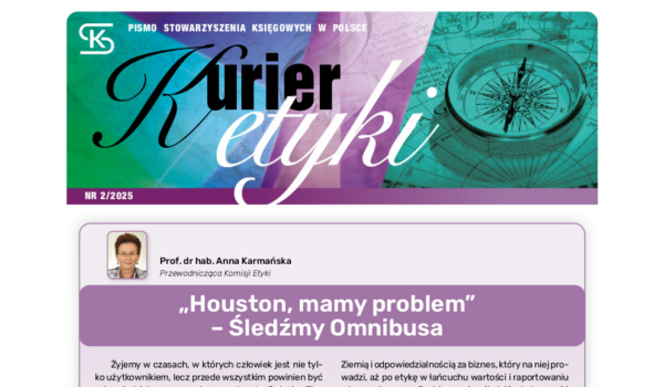 „Żyjemy w czasach, w których człowiek jest nie tylko użytkownikiem, lecz przede wszystkim powinien być odpowiedzialnym gospodarzem planety. Relacja „Ziemia–Człowiek” przestaje być jedynie tłem dla rozwoju cywilizacji – staje się centralną osią pytań etycznych, gospodarczych i ekologicznych. To, jak człowiek działa odbija się bowiem nie tylko na krajobrazie fizycznym, ale i moralnym świata. Oczkiem u wagi dla „Kuriera Etyki” jest oczywiście etyka rachunkowości i szerzej – w biznesie. Osoby zajmujące się rachunkowością pragniemy na nią uwrażliwiać poprzez tworzenie i prezentowanie różnorodnych kontekstów. Biznesy, ich organizacja i otoczenie, w których rachunkowość funkcjonuje są przecież różne. Z tym numerem „Kuriera Etyki” rozpoczynamy obserwację różnych wątków: od relacji człowieka z planetą Ziemią i odpowiedzialnością za biznes, który na niej prowadzi, aż po etykę w łańcuchu wartości i raportowaniu z tym związanym. Będziemy więc śledzić skuteczność i konsekwencje unijnego „Omnibusa”. Będziemy też przyglądać się sztucznej inteligencji, dla której raportowanie może być łakomym kąskiem" - Prof. dr hab. Anna Karmańska, Przewodnicząca Komisji Etyki.